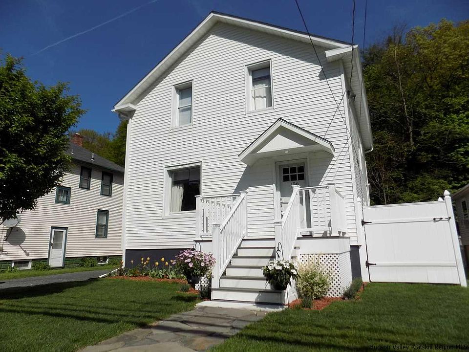Step inside from the understated exterior and be impressed by a "Wow" interior! Pride of ownership is evident throughout this classic two story home featuring original details combined with modern luxury features one would expect in a much higher priced home. A bluestone path leads to the new front steps and portico. The entire inside of the house was renovated down to the studs and is essentially a new home. The well designed gourmet kitchen is a focal point of the first floor living space and features new cabinets, beautiful high end granite work, a breakfast bar and a wine refrigerator. A door leads to a deck and a level fenced in rear yard oasis with very cute shed. Excellent flow between the inside and outside spaces creates great opportunities to entertain and relax. The large master bedroom is streaming with light and features a generously sized closet. The upstairs bathroom utilizes architectural slabs of marble and granite for a high end effect. This well-kept neighborhood is centrally located near the Broadway arts scene and just minutes to the Rondout waterfront, Uptown/Stockade neighborhood, Ulster shopping, or a quick hop over to Rhinebeck. Easy to show...and a pleasure!