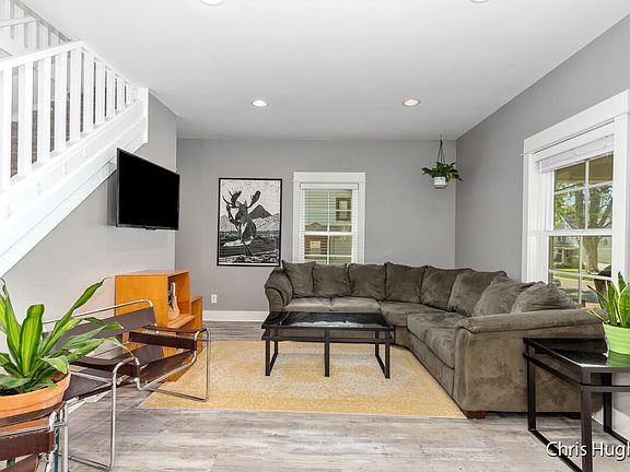 Wonderful 4 Bedroom and 2 Bath home 1.5 blocks from downtown Rockford and Rogue River! This gem was remodeled down to the studs 16 years ago and boasts open floor plan, high end finishes, 9'' ceilings, large open fully equipped kitchen. Main floor includes huge kitchen (island, quartz countertops), eating/dining area, newer appliances, new flooring throughout the first floor including engineered vinyl in the main living areas and slate tile in the laundry/mudroom and lastly a beautiful feature wall in the living room. As you go upstairs you'll find 3 bedrooms including the large primary bedroom (which features two full closets and a sitting area) and a full bath. The basement main area has been carpeted with carpet tile to create a great space for a home office, a workout area, and/or storage. Attached 2 stall garage, new garage door opener, on-demand hot water system, tons of storage, underground sprinkling, fenced backyard that backs up to a secret Rockford Park. Again, close to downtown Rockford (shopping/restaurants) and schools. Buyer to verify all information. All offers are due 12pm Wednesday July 12th.