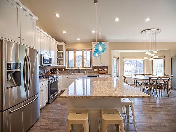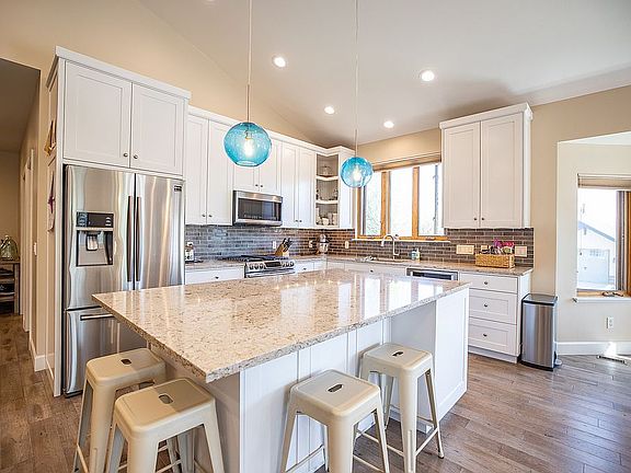 Located in Midway, Utah, the community of Valais is one of the most sought after neighborhoods in Heber Valley. Offering turnkey livability, Valais features a large clubhouse, two community outdoor pools and an indoor pool, the HOA dues include full community landscaping and snow removal and the adjacent Valais park has tennis courts, a basketball court, frisbee golf, playground and swings, picnic pavilions, baseball diamond and acres of open grassy areas to play in. This home was originally built in 2006, and is one of the more common floorplan options that was offered. With two spacious floors, a main level and a walk-out basement, this floorplan features approximately 3,448 square feet. This home was completely remodeled with extensive upgrades in 2019. The remodel included all new flooring throughout to include high-end, modern and durable wood floors and lush carpets. The completely new kitchen, includes new cabinetry, granite counters, matching stainless appliances, and large island. Throughout the main living, dining and kitchen area, all new LED ceiling can-lighting (dimmable), and designer light fixtures in kitchen and dining. The master bathroom was completely remodeled with heated floors, and an added separate garden tub and shower with seat. There was a bonus room that was very tastefully reconfigured up to create a large, walk-in master closet with built-in storage and huge walk-in pantry. This home features a large, 3-car garage with a southeast facing, down-sloping driveway which keeps the snow melted in the winter and ensures easy access to the garage during Utah's winter season. The doors are 8 feet tall offering access to the largest of SUV's or trucks. Above the garage there is a large attic in which many owners of this floorplan have finished into a large mother-in-law suite. On the main level, there are 2 bedrooms and 2 full bathrooms, along with the main living and dining area and kitchen. On the lower level, walk-out basement, there are two more large bedrooms and a third full bathroom. On the lower level, there is a very large living/family room and a bonus room that could be used as a study, a media room or whatever suits your needs. There are two patios, one on the main level and one off the walk-out basement. Both offer a large footprint of outdoor living space with the patio off the main level featuring a motorized awning. From both porches you can enjoy majestic views of the Wasatch back mountains and the cool mountain breezes. And when the sun sets over the mountains to the west, especially in the summer, the shadows of the shimmering Aspens off the back porch, as they are cast in the living room are just incredible.