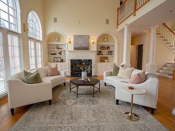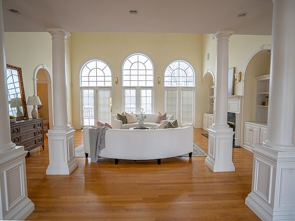 NO HOA This supurb home, sitting above the 10th green of The Legacy Golf Course, is located on a cul-de-sac street. The front entry opens to spacious high ceilings and abundant natural light, creating a warm and inviting atmosphere that is both timeless and charming. The details of crown molding, hardwood flooring, marble gas fireplaces, built in shelving, brick exterior, and a spacious deck overlooking the rolling, manicured hills of the golf course are just a few highlights of this well designed home. The eat-in "chef's" kitchen displays an array of high end appliances, granite countertops, newly updated, custom cabinetry, and heated tile flooring, along with a comfy lounge area with surround sound media, and scenic dining.The spacious Primary bedroom has sitting room with a back lawn view, an extensive walk in closet and an in-suite bath, that has a spa like setting with a tiled walk-in shower, soaking tub with jets, bench, and bubble rejuvenation, heated tile flooring, towel warming drawer, two granite vanities, and spacious closets. Do you work from home? Come and check out the spacious, sound proof office, with tv set up and wiring for surround sound. (TV and sound board does not convey.) The upper level of the home has 2 generous bedrooms with a jack and jill bath, and 1 other primary suite. There is also ample storage space. In the lower section of the home is a large bonus room, with bath and storage. Also, alongside the spacious garage, is a 2000 square foot climate controlled storage room. Whether reclining in your comfy spot in front of the fireplace, watching sunsets out on your private deck, or strolling in your back lawn around the waterfall pond, this home should be on the top of your MUST SEE list.