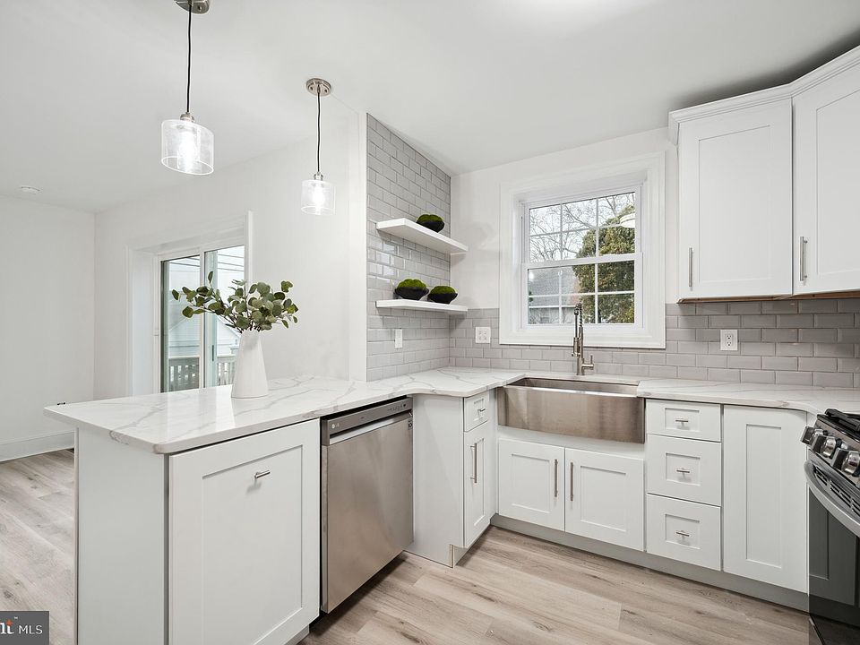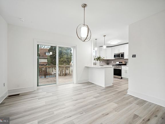 Welcome to the completely renovated 156 Edgemont Avenue in the heart of Ardmore. Award winning Lower Merion School District. Corner fenced-in property. As you walk into your covered front porch with fan, you will be greeted by the bright spacious living room. The gorgeous luxury vinyl floor extends throughout the bright and spacious first floor. The open kitchen with brand new LG stainless steel appliances, including a dishwasher and built-in microwave. The sliding door off of the dining room extends the space to a large back deck lit up by solar lights on each post. As you walk upstairs on the brand new carpet, you will find 3 large bedrooms and a full bathroom with a soaking tub and storage. The basement offers a washer and dryer with ample storage. In addition, a fully accessible garage with parking.