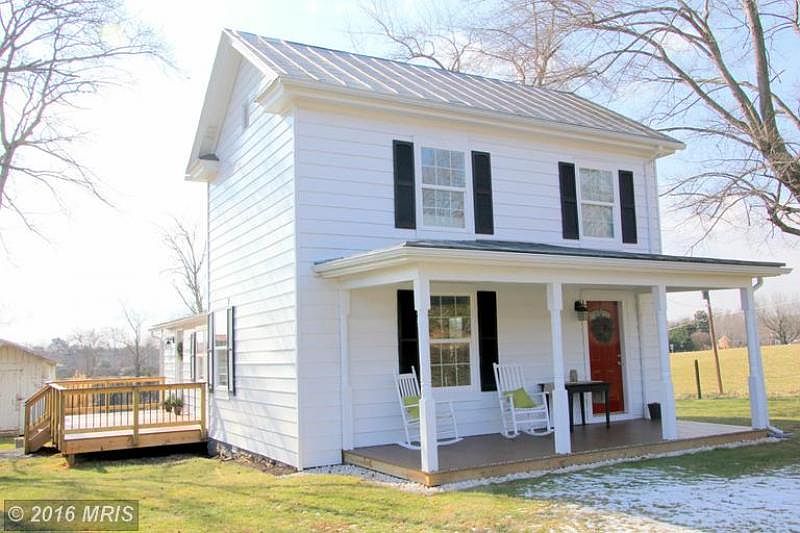1900's Farmhouse Made New Again ! This charming home has been completely renovated and is all New inside. Fabulous pine floors in living,dining,&bedrooms. Custom cherry cabinets. Appliances convey.New plumbing, electric, windows& bathrooms. New front porch floor & spacious side decking.Several outbuildings on 5 acres, make this home perfect for small farming and gardening. Convenient location !