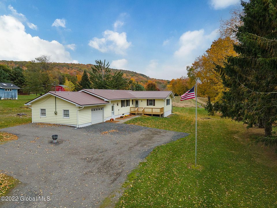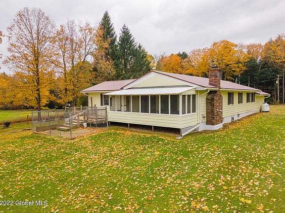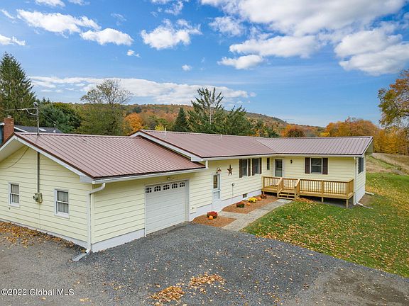 Move right in! This well maintained 3 bedroom 2 bath ranch is situated on 2.38 acres with a picture perfect country setting. Home offers a large living room with newer carpet, kitchen with hickory cabinets, dining area with cathedral ceiling and fireplace with pellet stove insert. Master bedroom with a full size bathroom with jacuzzi tub. Nice basement with plenty of space. 3 season sunroom for relaxing. New roof with seamless gutters in 2020. New front deck in 2022. Don't miss out on this beautiful home in the great town of Jefferson, NY!