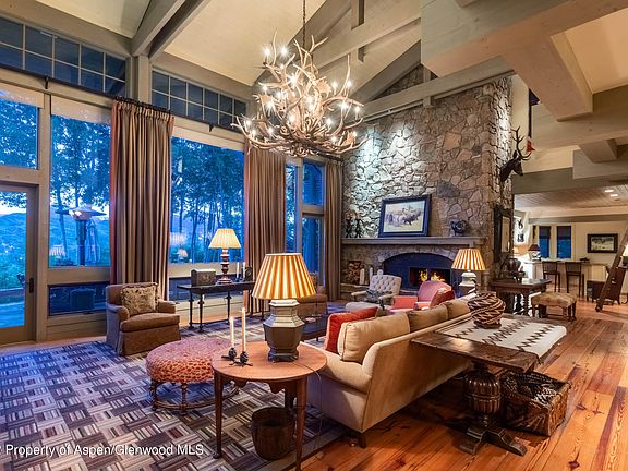 Elegant mountain estate privately situated on two park-like acres surrounded by towering pines with stunning views of all four ski mountains and the Elk Mountain Range. With over 8,000 square feet of living space, five beds, and seven baths, this timeless retreat was built to delight the entertainer and outdoor enthusiast alike. The open floor plan and soaring ceilings create a spacious feeling with an easy flow between the living room, dining room, and chef's kitchen. The adjacent outdoor living space provides exceptional privacy and echoes the home's beauty with multiple terraces for outdoor entertainment. Unwind in the billiards room and theater to complete a fun evening with family and friends. The second floor primary suite and a separate guest suite both offer private balconies forfor taking in the views and spectacular sunsets. The lower level serves as an ideal staff quarters with a bedroom, bathroom, living area and a dedicated entry. The two car garage includes a large bonus wing perfect for a workshop, art studio, or gear storage. for taking in the views and spectacular sunsets. The lower level serves as an ideal staff quarters with a bedroom, bathroom, living area and a dedicated entry. The two car garage includes a large bonus wing perfect for a workshop, art studio, or gear storage.