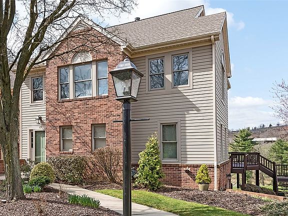One visit & you'll know that this is THE one! Wainscoting, vaulted ceilings, hardwood floors & a lovely neutral color palette. This end unit offers a FLEXIBLE FLOOR PLAN with the option of Main &/or Upper Level master bedrooms. Eat in kitchen w/granite counter tops, SS appliances, breakfast bar & plenty of cabinet space! Step onto the deck to enjoy the view while you sip your morning coffee or entertain guests. The DR & LR are filled with natural light from the large windows overlooking the 8th fairway&lake. 2 fireplaces add warmth&ambiance during the cooler months. The spacious UL MBR has vaulted ceilings, an abundance of closet space and natural light, plus renovated spa like master bath! On the UL you will also find 2 more BDRs, ample closets, FBath&laundry chute! The walkout LL features a wet bar, game room, fireplace, laundry area, PDR RM, more storage & access to patio and 2 car garage! This one checks all the boxes! Convenient to I79, PGH, airport, great shopping&casino!