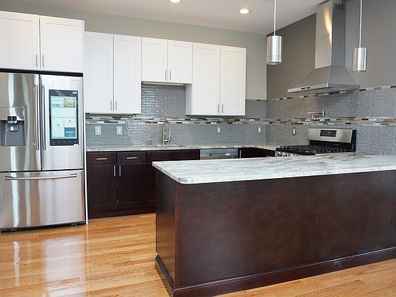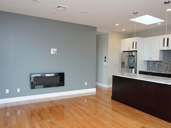 Impeccably designed 2018 gut renovation sprayed with foam insulation for energy efficiency, new windows, new roof, new electrical, new plumbing. Top floor condo conveniently located in East Boston's Historic Eagle Hill. Sliding glass door opens to a widespread covered balcony so you may still enjoy sitting out on rainy days with spectacular waterviews. Beautifully designed modern kitchen with Skylight completed with wine cooler, pot filler, stainless steel appliances, quartzite countertops and a spacious peninsula. Master bedroom offers an en-suite master bathroom featuring standup shower, in-unit washer/dryer hookups, double sinks with granite top. Other amenities include lighting-control from your smart phone, hardwood floors, common backyard, electric fireplace, private storage room in basement, Central Heat/AC, tankless water heater, Ecobee4 thermostat, Samsung French door refrigerator with Family Hub(tm). Close to Train Station, Logan Airport, parks, schools,shops/restaurants.