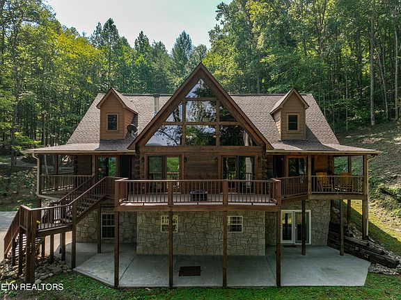 This Beautiful Custom-built Log home is located in Fence Rail Gap, a private gated community for permanent residents only, with a hiking trail and Pavilion with Fireplace. It has had extensive interior and exterior updates and improvements, including New - Roof, 3 of 4 HAVC units, Built in Sauna, Hot tub, Wood Burning fireplace, Big front windows, Granite countertops and most Appliances, the master bath has been updated, and the inside painted. The exterior has new Landscaping and has had extensive tree removal around the house and clearing below to give a Stunning Mountain View. This Log home has an Oversized 2 car garage plus a separate RV garage, with living space above it which would make an excellent in-law suite. There are 3 bedrooms, Bonus room (presently used as 4th bedroom), Loft, Home gym, and 5 full bathrooms. It is also equipped with a full house Generac generator. This beautiful home is in a Great location, only 10 minutes to the Townsend entrance of the Great Smoky Mountain National Park, and only 25 minutes to the Knoxville airport in Alcoa. Hot tub and Pool Table convey with sale. (Some drone photography used)