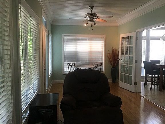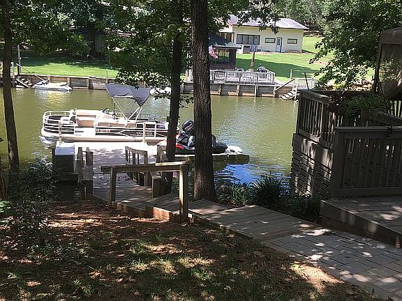 WATERFRONT!! 3 bedroom, 2 bath waterfront custom built home. Located in well maintained neighborhood. 3 bedrooms, walk-in closets. Master bath has separate shower, a soaking tub and double vanity. 3rd bedroom used as an office, guest bedroom. Main bath has remodeled huge walk-in shower with rain shower overhead and hand held sprayer with glass enclosure and tile floors. Endless hot water with propane gas tankless water heater. Living room has marble surround fireplace with propane gas logs. Kitchen with abundant cabinets, updated appliances, granite countertops with eat at bar and dinning area. Large Laundry room off of kitchen. Enjoy the view of the lake in large sunroom surrounded by windows. Go out on surrounded and gated deck from the sunroom or front door. Plenty of concrete parking with custom built walkways leads you to the dock and lake. Plenty of closed storage for lake toys under the the deck of house. 10 x 12 (approx) Custom built storage building is also a workshop. After a day of fun day on the lake, enjoy grilling and entertainment on the 19 x 16 (approx)custom lakeside deck. Beautiful, established and low maintenance yard. Screened gutters.