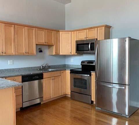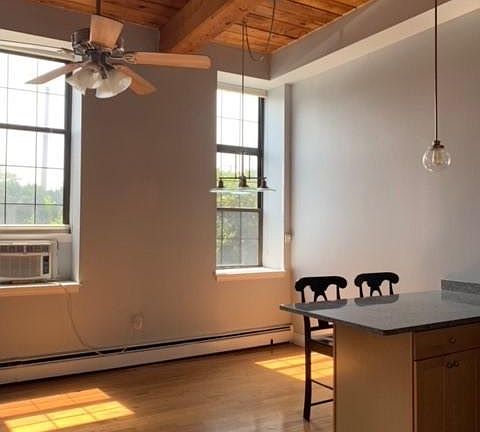 Charming open-concept apartment with high ceilings and large windows. Updated kitchen and bathroom. Heat; trash and snow removal included. Renter pays for electricity and cable.