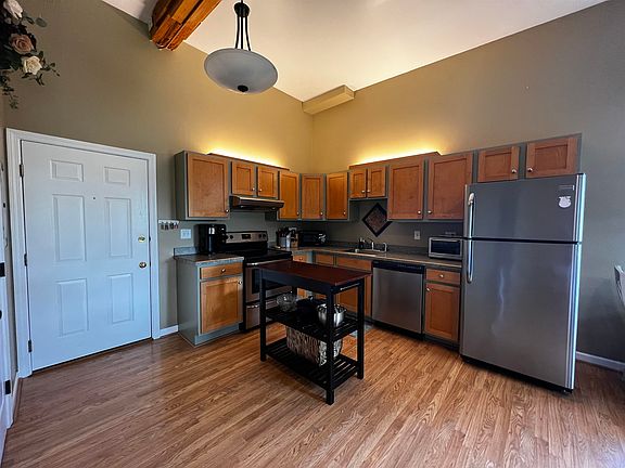 Desirable 4th floor unit in Front Street Towers Condominiums. Features open concept kitchen/living room with custom cabinets, vinyl floors, high ceilings, exposed beams, one bedroom and one bath. Conveniently located near the elevator, one assigned parking space. Condo fee of $325.00 includes heat and hot water! Lovely shared courtyard & grill. 2 person limit and 2 cat limit per condo docs.