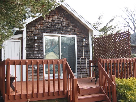 Downtown Falmouth. Walk to shops, restaurants, the library and everything else in the village. Tucked behind a privacy hedge, you will love this bright two story home with many recent upgrades. A tiled entry leads to a sun filled living room with a wall of windows. Next you will find a spacious dining area which is open to the large kitchen with a breakfast bar, skylight and a sliding door to the private deck. Also on the first floor is a bedroom and a full bath. Upstairs are two generous bedrooms filled with character and charm. There is a full basement and economical gas heat with central air. This is a great condo alternative.