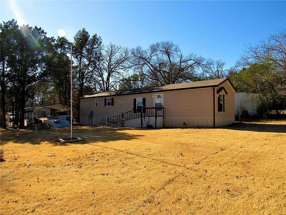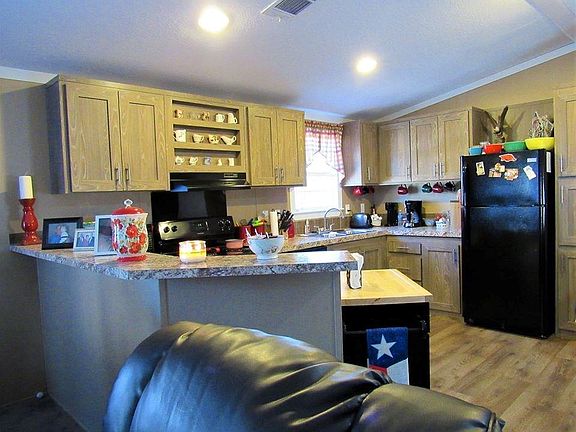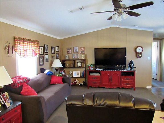 Come and enjoy lake life with friends and family at this beautiful 2 bedroom 2 bath 2016 model Home that sits on a corner lot across the street from Corp Property. The open living concept provides lots of room for you and your guests to enjoy. There is a large yard with mature trees to sit outside and enjoy the nature and country living. There is a new in ground storm shelter. This home is 1 mile from the Cedar Mills boat ramp and Pelican's Landing restaurant. This is a lease hold property, No vacation rentals owner must be present with any Guests. This is a Family oriented community. Comes with 4 seat Golf cart and riding lawn mower.