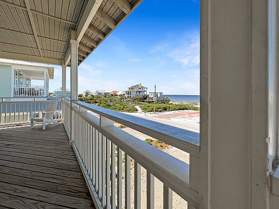 RENTAL READY 4BD/3BA RETREAT WITH GULF VIEWS IN THE COMMUNITY OF OCEAN HAVEN ON THE N CAPE! This two-story charmer offers an upper- level living space with gulf front balcony maximizing your beach experience. Vaulted and beamed ceilings enhance the open concept living, kitchen & dining layout. White shaker cabinets, quartz counters & stainless appliances create a classic design. Included on this level is a guest bedroom and bath with bay view balcony along with a large pantry for storage. On the lower level, sunset & gulf views can also be seen from the primary suite complete with balcony access, a double vanity and oversized walk-in shower. The balcony extends to a second guest room for added rental potential. A third bedroom, guest bath and laundry finish out the floor plan. Covered padded parking doubles as a shaded picnic and gaming area extending your entertainment space. Beautifully landscaped & inviting from top to bottom, this property has proven rental income & makes for the ideal investment. Fully furnished and rental ready! Ocean Haven offers boardwalk beach & deeded water access to sugar white sand pet friendly beaches. Don't miss this fantastic opportunity! Take the 3D Tour and call for a showing & tour of the area.