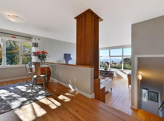 Mid-century gem - walls of glass look out to spectacular Golden Gate & SF Bay views. Romantic modern design, updated with original character intact. Close to UC, public transit, parks, and awarded Hilltop school. Blocks to pub. transportation, Tilden Reg. Park trails.
