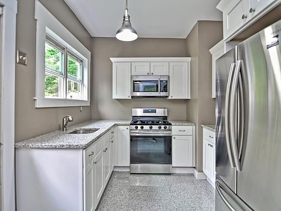 Oversized bungalow featuring a newly renovated kitchen, stainless steel appliances and gleaming hardwood floors. A formal dining area immediately off the kitchen, wood burning fireplace located in a generously sized living room. The first bedroom is located on the first floor, as well as the main bathroom. Staircase leading up to the two additional newly renovated bedrooms with a half bath, and a spiral staircase leading down to the partially finished basement featuring walk-out access. Potential for an in-law setup. An amazing amount of yard space with plenty of room to expand. One of the few homes in the area featuring natural gas connection.