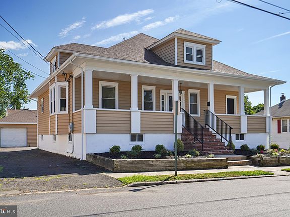 156 Homecrest Avenue is a traditional home built in 1925 just minutes from The College of New Jersey and Trenton, the state capital. A majestic covered porch greets you and is perfect for relaxing outside. Enter through the primary front door to a living room with wood floors and ornate woodwork. That theme is carried into the formal dining room which is attached to a large eat-in kitchen. A back door from the kitchen enters onto a large deck for outdoor entertaining. Working our way around the main floor you will find three bedrooms and two full bathrooms. With its own door to the outside, the front bedroom is perfectly suited as a home office. Upstairs you'll find three additional bedrooms all with wood floors along with a large storage room and another full bath. The upper level is served by its own HVAC. Beneath the main floor is a full unfinished basement with access from inside and through new Bilco doors. In the back sits an oversized detached garage. This distinguished home sits on a large parcel that includes four lots.