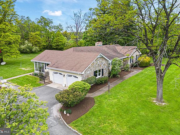 Beautiful custom-built 3 BR 2.5 BA ranch with 2 car attached garage on 4.5 luxurious acres surrounded by 700 acres of preserved woodlands once owned by the Johnson & Johnson estate, in desirable Hopewell Township, NJ. Minutes to downtown Hopewell Borough with quaint shops, gourmet restaurants, parks & theatre. Features include a large entry foyer, and a sunny formal living room adjoining the dining room with built-in cabinetry. The family room has a stunning stone fireplace with a hand-hewn beamed mantle, built-in shelving, and sliding doors to the backyard. The kitchen is spacious and has lots of cabinetry and counter space and the breakfast room with skylight has a door that leads to the large, screened porch. A convenient office, laundry & half bath are located on the first floor. The basement is finished with a bar, sink, refrigerator, and custom built-ins. Great for entertaining! Central air, covered front porch, a walk-up attic, HW flooring, lots of guest parking, and much more. Don’t miss this opportunity…come visit this home today.