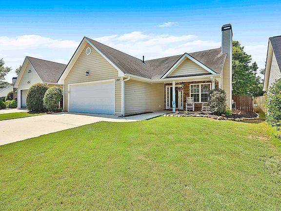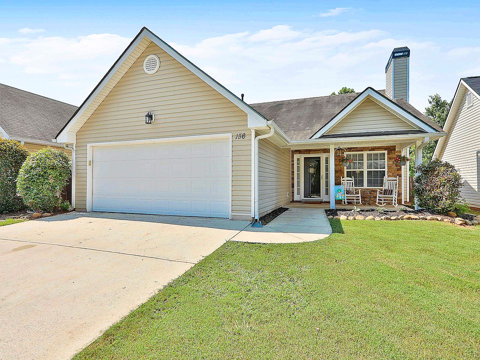 ENJOY 'ONE LEVEL' LIVING IN THIS TERRIFIC RANCH HOME W/ TERRIFIC FENCED BACKYARD! You'll love all about this home starting w/ inviting breezy Front Porch. Laminate Hardwood floors throughout home including bedrooms - No Carpet! Open Kitchen to Family room... All SS Appliances remain inc. Frig & updated faucet. Plenty of cabinet/counter space & under cabinet Lighting. Center wood Island perfect for Kitchen prep. Large Dining area in Kitchen w/ bright window is perfect for gathering. Laundry room/Mudroom w/ extra shelves & pantry. Family room offers stacked stone Fireplace w/ cozy gas logs. Terrific Master Suite w/ gorgeous Barn Door to Bathroom. New tile floors & spacious walk in Closet. Transom window over vanity for lots of natural light. Ceiling fans in all bedrooms and Family room. Floored attic storage. Beautiful, fenced backyard w/ patio & paver walkway to raised fire pit - perfect for gathering on cool nights! Trendy string lights highlight the outdoor space! Open lawn & shade trees out back. Enjoy Summergrove and it's terrific amenities to include 3 Pools, 100 acre Lake, Tennis/Pickleball courts, Golf course, Town Hall and new LINC walking trail. Close to shops/restaurants & minutes to I-85 & Atlanta Airport.