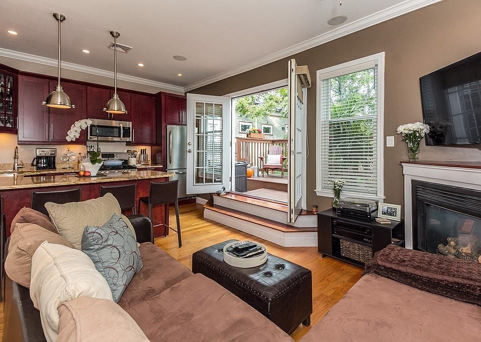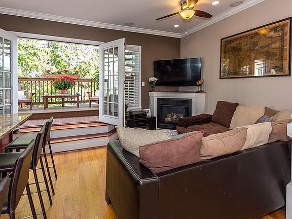 Eastside 2BR penthouse unit with tons of natural light and tasteful high-end fixtures. Blocks from the beach and bus line. This unit has oak floors, gas fireplace, central air, in-unit W/D, granite counter tops, built-in surround sound and storage unit. Bathroom has white marble and whirlpool tub. Living room/kitchen has French doors that open to a private tree covered deck leading to a spiral staircase bring you to a private roof deck with spectacular water view. Standard terms apply