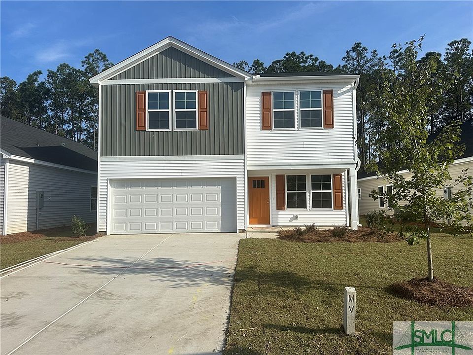 This two-story home has four bedrooms and two-and-one-half bathrooms and a loft. The guest bedroom is located upon entering the home and a long foyer will lead you to kitchen with upgraded cabinets, granite, luxury vinyl plank flooring, and an island. This space opens to an eating area and the family room. All three bedrooms and the loft are located on the second floor with a spacious guest bath conveniently located near the spare bedrooms and a laundry room with cabinets in lieu of wire shelving. The primary bedroom features a large walk-in closet and a bathroom with dual vanities and a garden tub with separate shower. A covered porch has been added just off of the eat-in area and the yard is fully sodded with landscaping and an irrigation system.