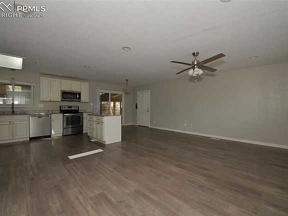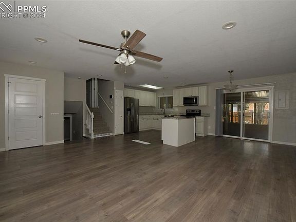 Charming Move-in ready home with enormous screened-in patio for extra living space in a quiet Widefield neighborhood! Open living as you walk in to living room with LVP flooring, open to walk-out eat-in kitchen with granite counters, island, pantry closets, sky light and stainless appliances including flat top range. Upper Master has new carpet, and attached 3/4 bath. Two more upstairs bedrooms one with new carpet, and the other with LVP. Upper full bath is updated with sky light and ceramic tile. Lower level walk-out family room has new carpet, attached 3/4 bath, and wood burning stove open to basement with built-ins, spacious rec room with extra fridge and LVP flooring, as well as large utility/laundry with washer, dryer and shelving! Fenced-in enormous backyard! Attached one car garage. Front fencing includes gate across driveway. Close to restaurants, I25, Ft Carson, hiking trails, golf course, park! Come see!!