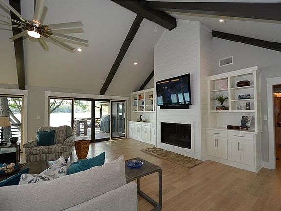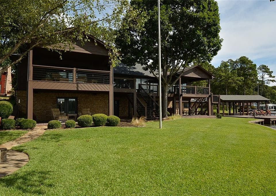 OUTSTANDING LAKE CYPRESS SPRINGS WATERFRONT HOME 289 FT SHORELINE Stellar main lake location with a panoramic view of Lake Cypress Springs! Beautiful cedar home; remodeled showcasing a magnificent GR with fantastic lake views. GR; hand scraped wood floors, WW, G FP. Master is gorgeous; wood fls, window treatment & ensuite with ST, SS, double vanities and walk in closet; the ultimate in luxury. 4 bedrooms including a bunk room each with their own private baths. Games room, bonus room are terrific for kids of all ages. Outdoor living; bar, cook station, decks, 2 double boat houses, FP, lawn for games. Meticulously maintained. Upgrades that you would expect to find in a luxury lake property. Paradise at the Lake!