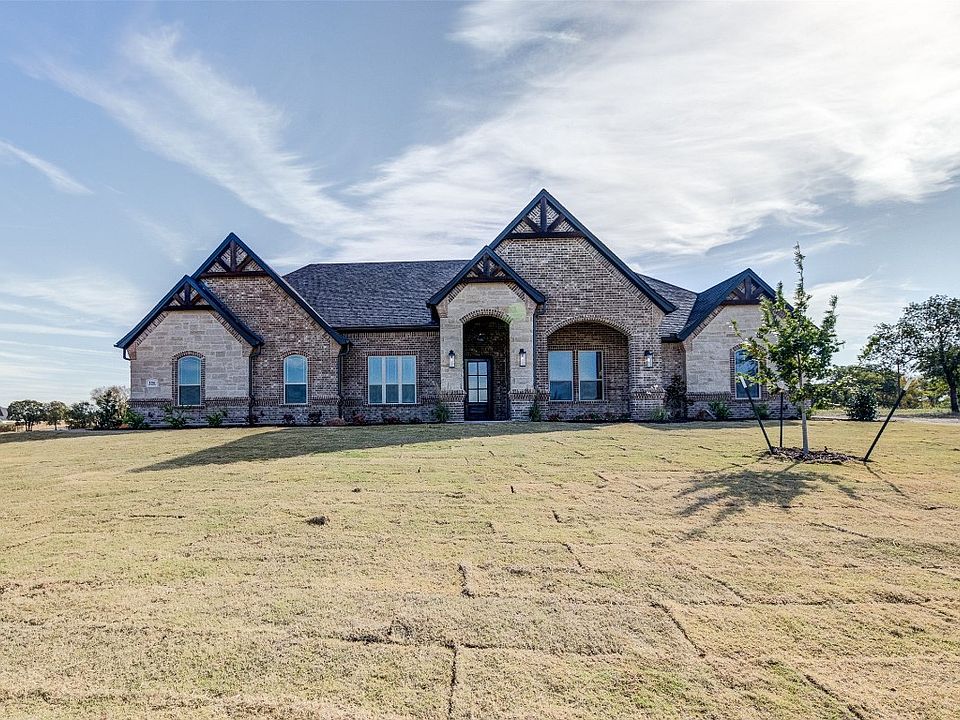 Quality craftsmanship can be seen throughout this gorgeous LBK Home, located in the highly sought after Las Brisas Estates. 4 bedroom, 3 full bathrooms, and an oversized game room. No detail goes unnoticed in this elegant home. Stone and brick exterior, hardwood floors, matte black hardware, marble and quartz countertops, cabinets to the ceiling in the kitchen with exceptional detail. Large master bedroom with great natural light. The master bath has separate vanities, large walk through shower, soaking tub, and large walk in closets. Vaulted ceilings in the living room with wood beams and stunning stone fireplace. Large island in the kitchen, great for entertaining. 3 large bedrooms with walk in closets. 2 bedrooms share a jack and jill bathroom. Game at the rear of the house with wood floors and exterior door to patio. Oversized back patio with stone fireplace. Enjoy luxury country living in this community with fiber optic internet, underground utilities, and street lights.INCENTIVES