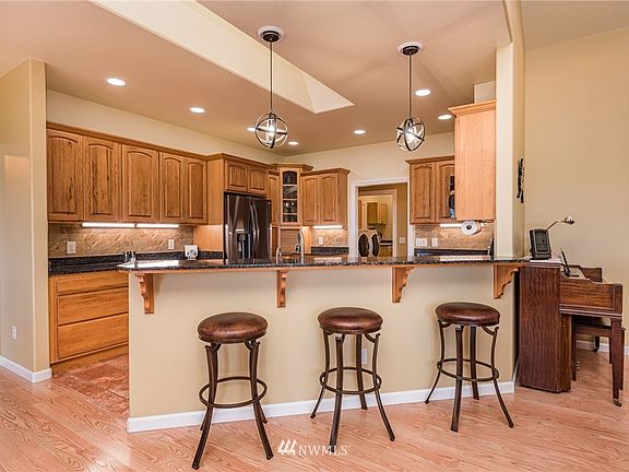 Quality-built custom 3304 sq. ft. water view home located at the end of a cul-de-sac on 1.26 acre. Single-level 2404 sq. ft home offers an open-concept living room, Formal-size Dining, & Kitchen w/breakfast bar. 3 bedrooms plus office/den, 2 baths large laundry/pantry & 3-car garage. Master suite features his & her walk-in closets, 3 sinks (his/hers/theirs) & large tiled shower. Separate entry to brand new, 900 sq. ft. finished daylight basement with kitchen, family room, 1 bedroom, bath & laundry hook-ups.