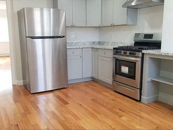Just RENOVATED! Everything NEW and Updated! Sunny, Light and Bright! HUGE Kitchen and Living Room! Gleaming hardwoods, stainless appliances, modern bath, 5 burner gas stove, HUGE private outdoor deck (with mudroom off kitchen). Two small bedrooms (no closets) that will fit full beds. LAUNDRY is in the basement. Quick walk to subway, grocery and restaurants. Great credit & references a must. Pets on a case-by-case basis. First, security and broker fee. Owner pays for water, sewer, trash, common areas.