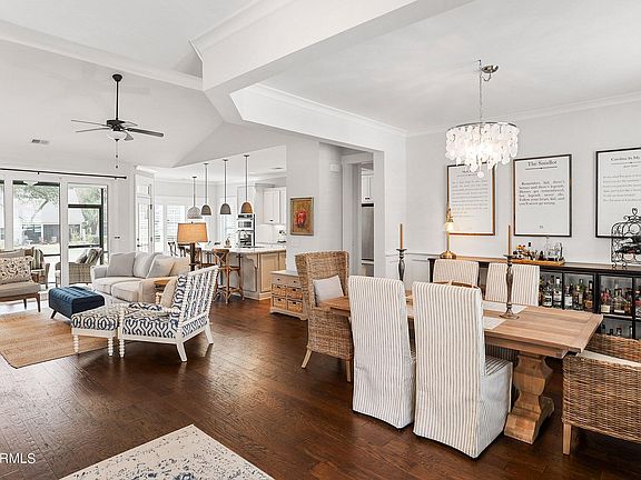 Welcome to 156 Locust Fence! This amazing home has so much to offer with attention to detail throughout the home. You will be greeted with an open floor plan that allows you to visually see through the home from the front door. Lots of windows and glass doors allow the inside and outside to meet as one. The owners added custom architectural details that enhance many of the rooms. On the main level of the home, you will find 3 bedrooms and 2 baths with the primary bedroom separated from the guest bedrooms. The spacious primary bedroom with en suite offers dual sinks, walk-in shower, two walk-in closets and a linen closet. The two additional bedrooms and bathroom are on the first level along with a nice-sized laundry room featuring custom shelves and cabinets. On the second level above the garage is a bonus room including a full bathroom perfect for guests, office, workout, or hobby space. Back downstairs wood floors flow seamlessly throughout the main living areas as high ceilings, natural light, plantation shutters, and trim detail complement the casual decor. A fireplace with surrounding built-ins accent the great room while sliding glass doors open to a screened porch overlooking views of the Morgan River golf course. The kitchen supports ease of cooking with stainless steel appliances including a built-in oven and convection microwave, 5 burner gas cooktop, a large island with bar seating and storage, granite countertops, and pantry. Both the breakfast area and the more formal dining space are open to the kitchen and great room, making it easy to entertain family and friends. The home also features a two-car garage plus golf cart bay, providing ample space for all your vehicles, golf cart and equipment. Dataw Island is a private, waterfront community offering a long list of amenities, clubs, and volunteer groups. Social activities are abundant. Water and marsh views can be enjoyed throughout the island, along with the natural inhabitants of birds, dolphins and more! Enjoy this incredible community in this amazing home! Membership in the Dataw Island Club is required.