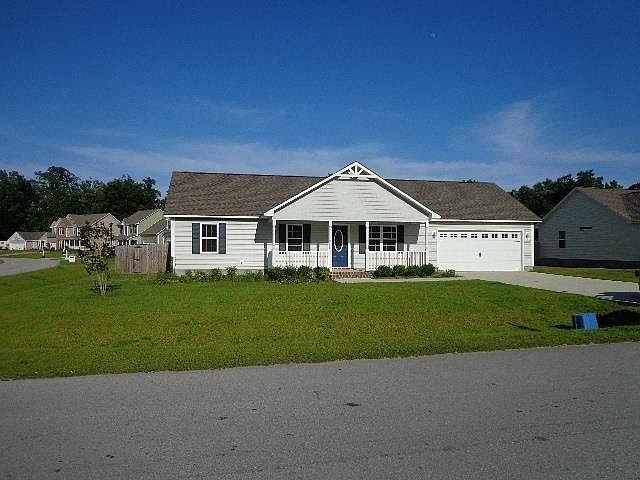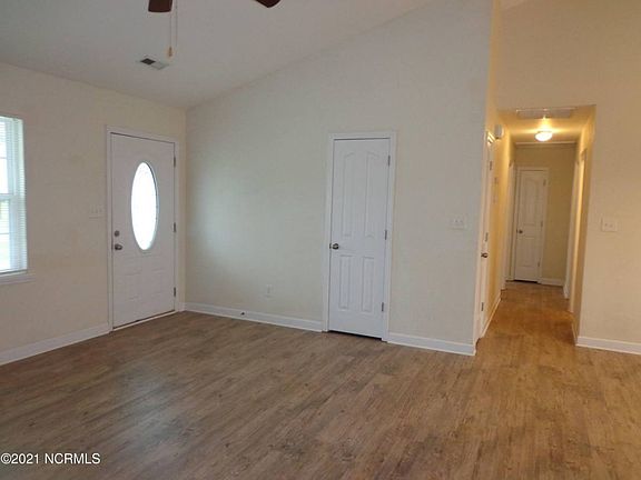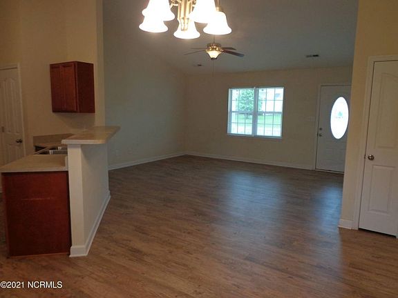 Great Location. Enter off the Covered Front Porch into the Open Living Room with Vaulted Ceilings. The Kitchen and Dining Area are complimented by a Breakfast Bar, Nice Cabinets with Pantry, a Black Appliance Package and Indoor Laundry Room. Pass through to the full-size 2 Car Garage with an Extended Bay for the extra length needed to park a boat or just Extra Storage. The Beautiful Lvp Flooring continues down the hallway and was used in both Full-Size bathrooms. All 3 bedrooms have Brand New beautiful Gray Carpet with the master having a Trayed Ceiling, a 2nd Walk-In Closet and a Double Vanity in the bath. This home sits on a Fully Fenced Corner Lot in Thompson Farms and is only 7 miles from Mcas New River, 16 miles from Camp Lejeune and a quick 18 miles from North Topsail Beach. Won't last long. No Pets Allowed. Renters Insurance required prior to move in. Security Deposit and $300 Cleaning Fee required.