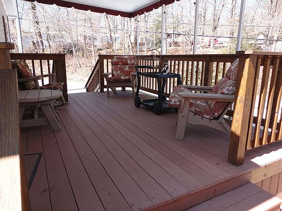 See Priscilla Stolba Real Estate for listing. Spacious 52' x 26' double-wide manufactured home in Otis Trailer Village, Mashpee. Four minute walk to private beach on John's Pond for village residents and town beach 1/4 mile up the road. Open concept living room, dining room and kitchen. Two bedrooms; two baths, laundry area, master bedroom suite has 8 x 10 walk-in closet. Two outside covered decks, shed and 10 x 12 heated workshop with electricity. Park fee: $352.00/month for water, septic, taxes, trash, road maintenance. Note: street name was recently changed by town; google.com/maps show all roads in park. Call Jack Logan at 508-740-5793 for showing or to answer any questions.