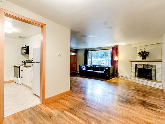 Home features hardwood floors in living/dining room areas with wood fireplace in corner. Beautiful new hand milled custom 5 panel solid wood fir doors, and trim; remodeled bathroom with cast iron tub. Also includes vinyl windows, some new light fixtures, no popcorn ceilings and plumbed for gas! Large level lot with new 12 x 14 Shed in backyard, & raised garden beds.