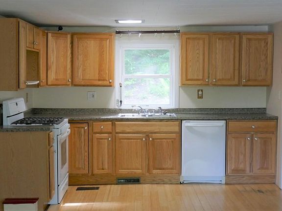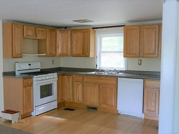 Lovely Open Concept Home with a Water View of Big Island Pond. This Two Bedroom Ranch features an Open Layout of Kitchen, Living Room and Dining Room, Fully Applianced Kitchen, Laundry Area on Main Level, Mitsubishi Mini Split Cooling System, Pellet Stove, Rinnai Water Heating System and a One Car Garage. One Level Living at Its Finest! A Must See!