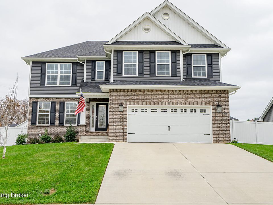 Welcome to this GORGEOUS two-story home, where modern living meets classic charm! As you enter, you'll be greeting by a stunning foyer and dining room featuring wainscoting, crown molding, and beautiful hardwood flooring setting the tone for the elegant details throughout. The spacious main level offers a bright and inviting area perfect for relaxation and entertaining. The heart of the home is thegorgeous kitchen, showcasing white cabinetry, granite countertops, and a large walk-in pantry for all your storage needs. Upstairs,discover a spacious and serene primary suite complete with an ensuite bathroom featuring dual vanities, a tiled shower, soaking tub and a large walk-in closet. Three additional well-appointed bedrooms offer versatility for family, guests or a home office while the large closets in each of these provide ample space for all your storage needs. Built with efficiency in mind, this home ensures comfort offering a dual zone heating and air system. The unfinished basement provides additional space and is framed for another room, insulated and plumbed for another bathroom. Step outside to a spacious yard with low maintenance white vinyl fencing! This yard is ideal for summer barbecues, gardening or simply relaxing after a long day. Don't miss the opportunity to make this BEAUTIFUL home yours! You simply need to look for yourself to appreciate all this home has to offer! This home is conveniently located just minutes to all the amenities Elizabethtown has to offer and short commute to Fort Knox. Schedule a showing today and experience the the perfect blend of modern living and community charm!