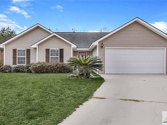 Welcome home to 156 Mustang Drive! Just off the entry, vaulted ceilings and tons of natural light make the spacious family room the hub of the home. This open concept floor plan features an eat in kitchen with stainless appliances (that stay with the home), plenty of cabinet and counter space, as well as a generous pantry. Step out into the privacy fenced back yard, equipped with a storage shed, above ground pool and patio perfect for grilling and entertaining. Just down the front hall you will find the master bedroom. With a tray ceiling, generous walk in closet and en suite bath, complete with dual vanities, tub/shower combo and linen closet, it's the perfect retreat. Two guest rooms share a hall bath. The best part is location, location, location! Great schools, yet just minutes from Pooler, Gulfstream, and the GA Ports!