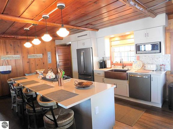 100+ Ft Lake Huron FULL Log Home, maintained and overall Excellent Condition~ 4 Bedroom in main home with new ceramic tile Bathroom. Open Living room with a totally NEW kitchen, including all Quartz countertops and stainless new appliances. Kitchen Island has extra seating too. All refinished hardwood flooring and carpet upstairs. Sunroom has a panoramic view of Lake Huron with all windows! Overflow Guest cottage has 1 Bed, 3/4 Bath with living room and full kitchen, makes it nice for extra guests. Some built-ins, lots of storage for you. With main home and guest cottage included, you can accommodate Large Groups and guests. Great for entertaining~ Detached 2 Car oversize Garage for the extra toys, cars etc. and more storage. The deep lot is wooded and very private, the driveway in is so pretty! Current owners have maintained the home which truly shows in pride of ownership. The Log Chinking has been re-done, New Roof in April 2017 also. Nat Gas F/A heat, laundry/mud room as you enter from rear of home! Living Room has a Napoleon Airtight Woodstove for the chilly days. The setting of this home is superior with land size and the way home sits on Lake Huron. Level lot to water's edge with sandy bottom. Tawas Point and the bike path are close for you, along with the downtown Tawas Bay area within 5 minutes. Call this your weekend get-a-way, year round home or summertime, you will not be disappointed.
