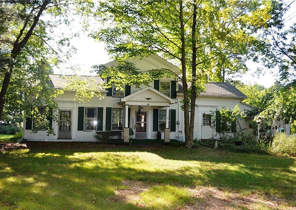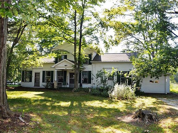 This well loved home sits just north of town on 6.43 acres. Originally called a "Butterfly house" because of the two story middle with left and right one story wings. Large kitchen, dining room and living room are spread across the front of the house. Two bedrooms and full bath on each floor. Second floor has additional finished bonus room, just needs heat. Laundry room off kitchen. Original trim is stunning. Two story workshop with electric and heat. Former Juliet Lake in back of property.