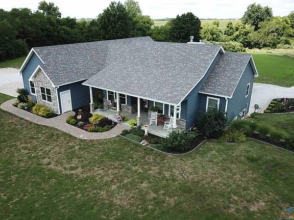 Need more room! The 2020 Social distancing was easy on this 6.88 acres. This move-in ready ranch style home with many areas for entertaining or relaxation. SPECTACULAR 6.88 acre, 5 Bedroom, 3.5 Bath, Custom Built Home W/STUNNING VIEWS north, south, east and glorious sunsets to the west. The home stays cooler in summer with west side garages PLUS a lower floor garage facing the north. IMPRESSIVE Ranch Style Entry, Dining Room & Living Rm invites an AMAZING KITCHEN with oversized GRANITE counter areas plus separate wine rack. STAINLESS LIKE appliances! TWO FIREPLACES (gas & wood) bring aveance as a focal point. You will love the ENCLOSED 3 SEASONS ROOM VIEWING COUNTRY SERENINITY! There is a MAIN SUITE on each level. Lower level is perfect for IN-LAW quarters, if needed! Each level has OUTDOOR LIVING AREAS. The upstairs balcony invites to a deck. THE WALKOUT BASEMENT leads to OUTDOOR LIVING, HOT TUB, FIREPIT & NATURE INSPIRED RELAXATION. ENJOY WORKING from home in THIS GRAND OFFICE area currently a guest bedroom on MAIN LEVEL! LUXURY LIVING plus plenty of RECREATION Space! Well is certified and includes water treatment system. Two water heaters, two heating and cooling systems, Garden shed for mower, tiller, weed eaters, garden needs. Originally custom built and loaded w/extras... Come see for details! 1) Home is located on 6.88 acres in front of paved road with easy access to US 50 Hwy, Whiteman Air Force Base MO, and the Knob Noster State Park. 2) This ranch style home has 2146 SqFt living area on the main floor plus a 2146 SqFt basement/1576 SqFt Finished. Three season room, deck, covered porch, etc. 3) TWO Laundry hook-ups located on main and lower floor so you can decide the preferred location your washer & dryer. 4) Kitchen includes custom cabinets, granite floors, gas stove, built in dishwasher, garbage disposal. Granite counter tops with abunance of prep space. 5) Upgraded light fixtures and many upgraded ceiling fans throughout the home. 6) Main level attached 3-Car garage PLUS lower level with oversized garage door height for TRUCKS and BIG BOY TOYS. 7) Plenty of room for multiple vegetable and flower gardens! 8) The home was built in 2016. The 2019 Real Estate Taxes were $2706. Outside city limits. 9) Knob Noster High School Ranks in the top 3% of high schools in Missouri. Rated #1 in the Missouri rural school districts. 10) One Year Home Warranty of $600 is included of the buyers choice