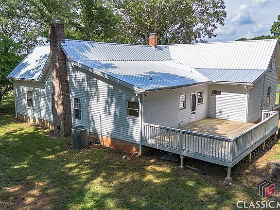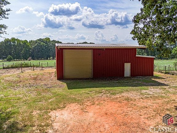 Classic Farmhouse living with beautiful views of sunrises and sunsets in Madison County! A renovated farm home originally built in the 1900's surrounded with 10 acres of peaceful pastureland. The rocking chair front porch extends the entire front of the home and the right side as well. This 3 bedroom/2 bath home opens up to a wide and inviting foyer with shiplap walls. On either side of the foyer you will find a sitting room which could be used as an office and a front bedroom and a connected full bath and closet. The dining room sits next to the kitchen and also leads to the master bedroom, master bath, walk in closet and double vanity sinks. The kitchen has an outdoor patio for grilling and outdoor entertaining. The 3rd guest bedroom has a study area attached and exterior door for private entry if needed. All the bedrooms are oversized as in that era of homes built. The metal outdoor building made with steel beams has 2 roll up doors to allow farm equipment storage and one small office room with electricity and wood burning stove included. Other features include metal roof, conversation easement as of 2018, septic tank pumped 2018, water spigots in fields and fencing for livestock. This peaceful retreat and serene country living is a fabulous fine!
