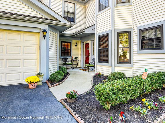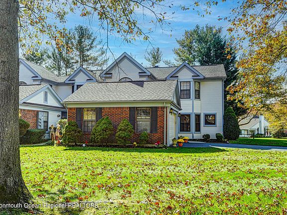 Situated on one of the best locations in The Manor at Wayside, this end unit townhome offers 3 bedrooms and 2 1/2 baths with an attached 2-car garage. Living room with gas fireplace and designer ceiling fan has slider doors leading to a private patio. Eat-in kitchen and foyer with hardwood floors. Open floorplan makes entertaining a pleasure. The primary bedroom has a full bath with 2 sinks, jacuzzi tub and shower stall. This great community offers a clubhouse, large pool and tennis/pickleball courts. Conveniently located to shopping, restaurants, Jersey Shore beaches and quick access to Route 18, 35, 36 & the GSP.