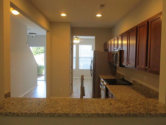 Desirable and well maintained community of Wellington. Close to everything and centrally located. Beaches, Mall, Market Commons, Airport, Broadway at the Beach. This completely remodeled 2 bedroom and 2.5 bath is light, bright, clean, and ready for move in! All new solid surface floors throughout entire unit! Freshly painted! New granite! New stainless appliances! Full dining area, or could be used as an office. Large open kitchen with breakfast bar and pantry! Livingroom opens to covered and screened patio with wooded views! 1/2 bath and under stair and outside storage! 2 large bedrooms upstairs each with own bath. Laundry room with connections. Community pool! CALL THE OFFICE!! Includes: water, sewer, trash, pool and landscape. Tenant pays: electric cable and internet