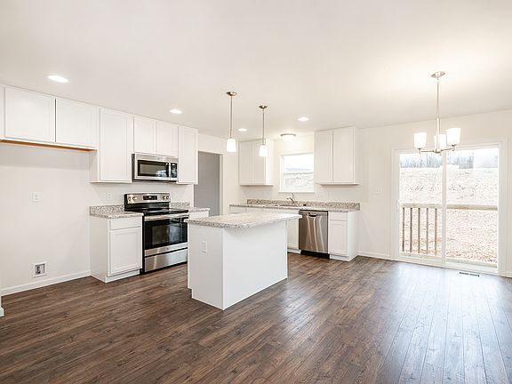 This new McBride Homes two story Berwick, with 3BR, 2.5BA, and ready in early 2023! This popular floor plan is perfect for entertaining with spacious family room and separate expansive kitchen layout with large dining area. Beautiful wood laminate flooring, 6ft windows and 9Ft ceilings throughout main level. Kitchen features stainless steel GE appliances, level 4 painted white 42" tall cabinetry and center island with extended breakfast bar. Spacious family room features ceiling fan and large windows. Upstairs features master suite with walk in closet, plus private bath with double sinks, 5ft walk-in shower, linen closet, and large window. Two additional bedrooms and full bath upstairs, plus second floor laundry. ¾ bath rough in at basement and more! Manors at Charlestowne Landing located next door to New Town, features common ground and beautiful lakes, and is included in the Orchard Farm School District. 10 year builders warranty and incredible customer service! Similar Photos Shown.