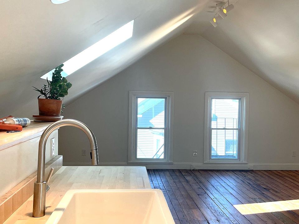 Electric, and gas (and ac!) included. One bedroom, free laundry in the basement, off street parking. Renovated in 2022 this charming third floor attic apartment is bright and sunny with sky lights and original hardwood floors. One block to the armory and a quick walk to lots of bars, restaurants etc. There is a dog on the first floor who does not want a friend but cats are welcome. Owner pays water, sewer, gas and electric. Security deposit due at signing. One year lease ideally. No smoking.