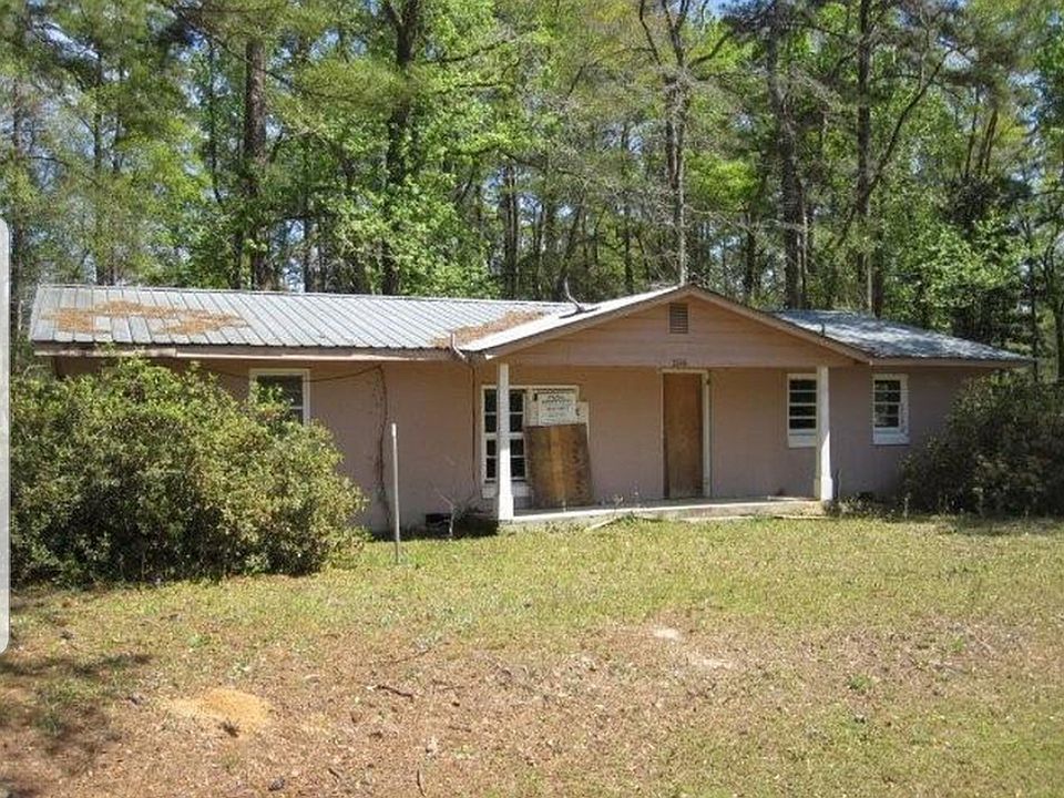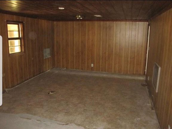 Exterior Features:This house is on a 21750 sq ft lot. Curb appeal is fair for the area. It is painted block construction with a metal roof that is in fair condition . Broken front window.There is a dirt driveway to the side of the home. There is a screened porch in the rear and a covered carport area to the side.Interior Features:This is a 2 bed 1.5 bath house with 1064 sq ft. Flooring is vinyl and carpet in areas. There are no kitchen appliances. There is a lot of wood paneling on the ceilings and walls. There are some unfinished walls. Great investment home for rental or for a starter home.