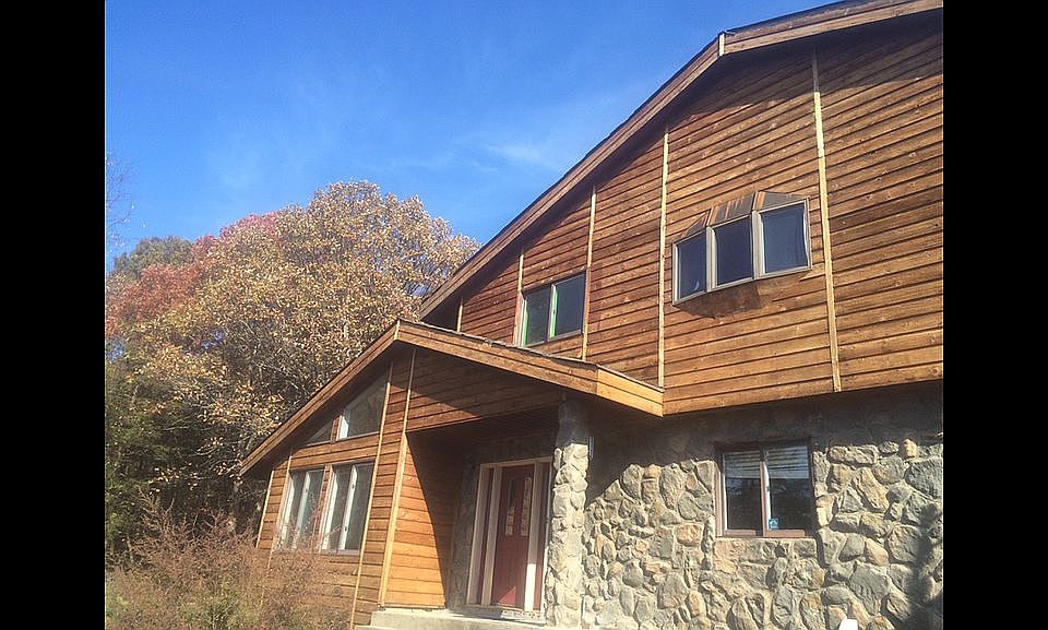Aspen/Mountain-style cedar home: 5 bedroom, 3 bathroom, 2 car garage, swimming pool, large private fenced wooded lot with gated driveway entrance.