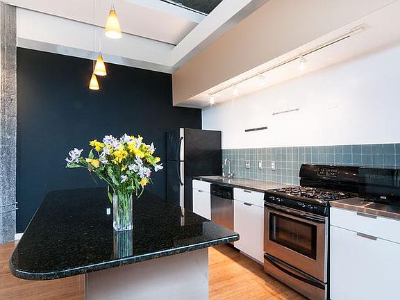Simply spectacular this corner loft at the desirable Porter 156 is truly one of a kind! As you walk in the door you are immediately delighted by the walls of windows and the expansiveness of the loft. You can't believe how much space there is and you are thrilled at the sun pouring in and the true beauty of the home. With the separate bedroom on one end of the loft and an enormous living and dining area on the other end of the loft, this is not just another apartment this is an incredible place to live. The restoration of the concrete ceilings, beams and walls of this former bra factory blend well with the walls of glass and the lovely bamboo floors. With soaring 14 foot ceilings and the perfect floor plan, this is loft living at its best! With in-unit laundry, central air, one car parking, a stunning roof deck and on-site management, it's all here and at a fabulous price. The location is beyond convenient just steps to the T, minutes to the tunnel and nearby the emerging Waterfront where you can enjoy delightful restaurants, bars, shopping, parks and sailing. East Boston has arrived and this home certainly does not disappoint! Tenant pays first month's rent and last month's rent. Utilities are separate so there is a gas bill and an electric bill. Available for September 1st. There is a broker's fee equal to one month's rent.