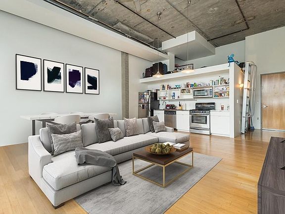 Loft at Porter 156 w/ private patio & garage parking. Open, sunny space with park views in East Boston's hottest neighborhood: Jeffries Point. Living level features 14' ceilings, large windows, exposed brick & patio overlooking landscaped grounds. White kitchen w/ stainless counters & appliances. Large bathroom w/ adjacent storage/laundry room. Loft level makes ideal sleeping space or additional storage. Low condo fees & taxes (with RE exemption). Porter 156 is a professionally managed, elevator building with rooftop owner's lounge & large roofdeck with sweeping City views. Steps to new restaurants The Quiet Few, Cunard Tavern, Reel House & KO Pies. Nearby T Station, Logan Airport, Santarpio's & Piers Park overlooking Boston & Harbor.