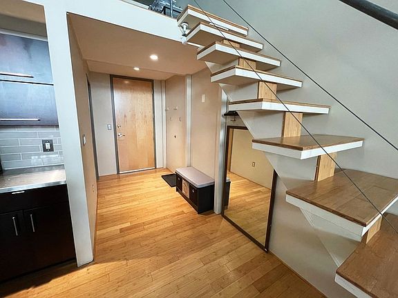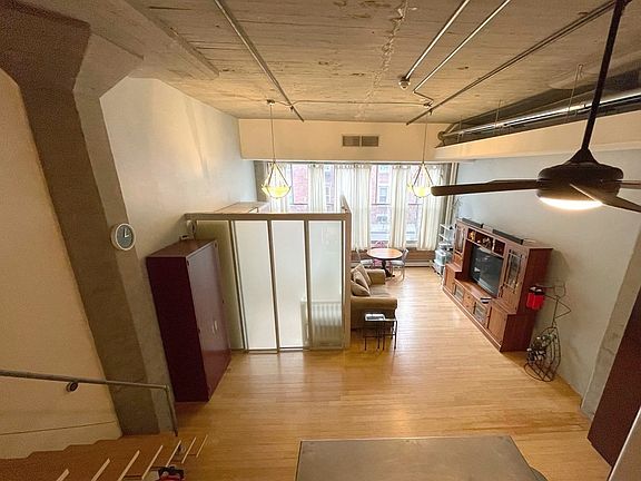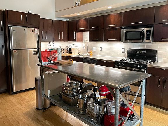 Dazzling East Boston loft-style living at Porter 156!! MODERN. INDUSTRIAL. TRENDY. Be wowed by this south-facing, sun graced home with enormous windows reaching up to its 15 feet high ceilings, and massive open concept living spaces. Hardwood floors throughout the home, with central heating and cooling. Take the elevator up to the roof deck to take in panoramic views of our Boston skyline. Time it for the golden hour, and youâll enjoy breathtaking sunsets. 156 Porter is the dream location for commuters and jet setters. Easy access to the MBTA into the city and direct access to Logan airport. This neighborhood also enjoys close proximity to Boston Harbor, seaport district, great parks, new restaurants, and major highways. This is a professionally managed building with on-site staff, roof deck, and community room, and this unit also has in-unit laundry.