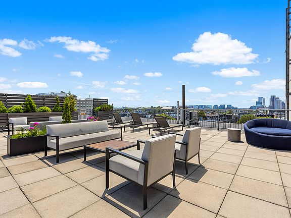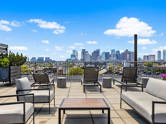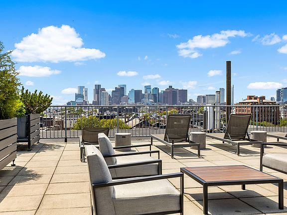RARE RENTAL avail 9/1/25 at iconic 156 Porter Lofts, in Jeffries Point! Enjoy this sunny, modern oversized studio offering 760 sq ft of living space PLUS a large lofted storage area, (w loft = 857 SqFt). The unit offers abundant natural light from the dramatic factory-sized windows, soaring ceilings, updated kitchen & bathroom, a flexible floor plan, ample storage in the loft & walk-in closet. The unique loft boasts updated bamboo flooring throughout the living/kitchen area, new tile in the bathroom, exposed brick & beam details. Other features include in-unit washer/dryer combo, 1 outdoor parking space, & central A/C. Enjoy living in a mint condition building that has a huge common roof deck with jaw-dropping city views & a resident community room; perfect for remote work, entertaining, or hosting events, a community herb garden & two elevators! 156 Porter, it's a true architectural gem, located seconds to East Boston Greenway, parks, Airport T & more. First & last month's rents are required, no broker fee. 12 months lease 1 parking spot included in rent